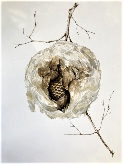 Paper Wasp Nest 12×16 Egg Tempera